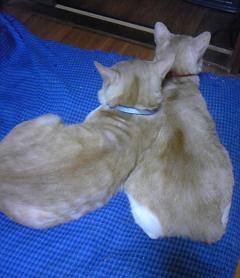 「さみしかったかーい(≧▽≦)??」 と、わたしの帰宅を待ち焦がれていた(?)にゃんこ2匹をハグハグして、ご満悦(笑)