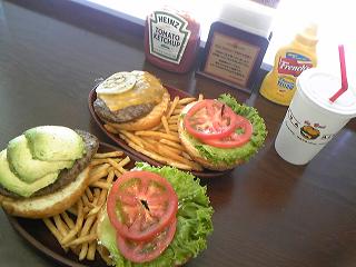 Iちゃんは一番人気のアボカドバーガー、わたしはチーズバーガーを。