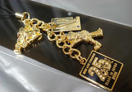 「スキンブル」と「列車」と「7000回⇔25周年モチーフの切符」と「25周年」のチャームがついたストラップ。